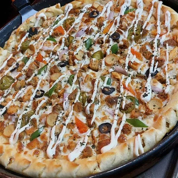 Chicken – Cheese – Capsicum – Onion – Kabab Stuff – White Sauce